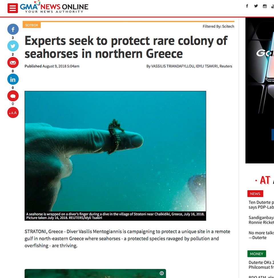 • gmanetwork.com: Experts seek to protect rare colony of seahorses in northern Greece